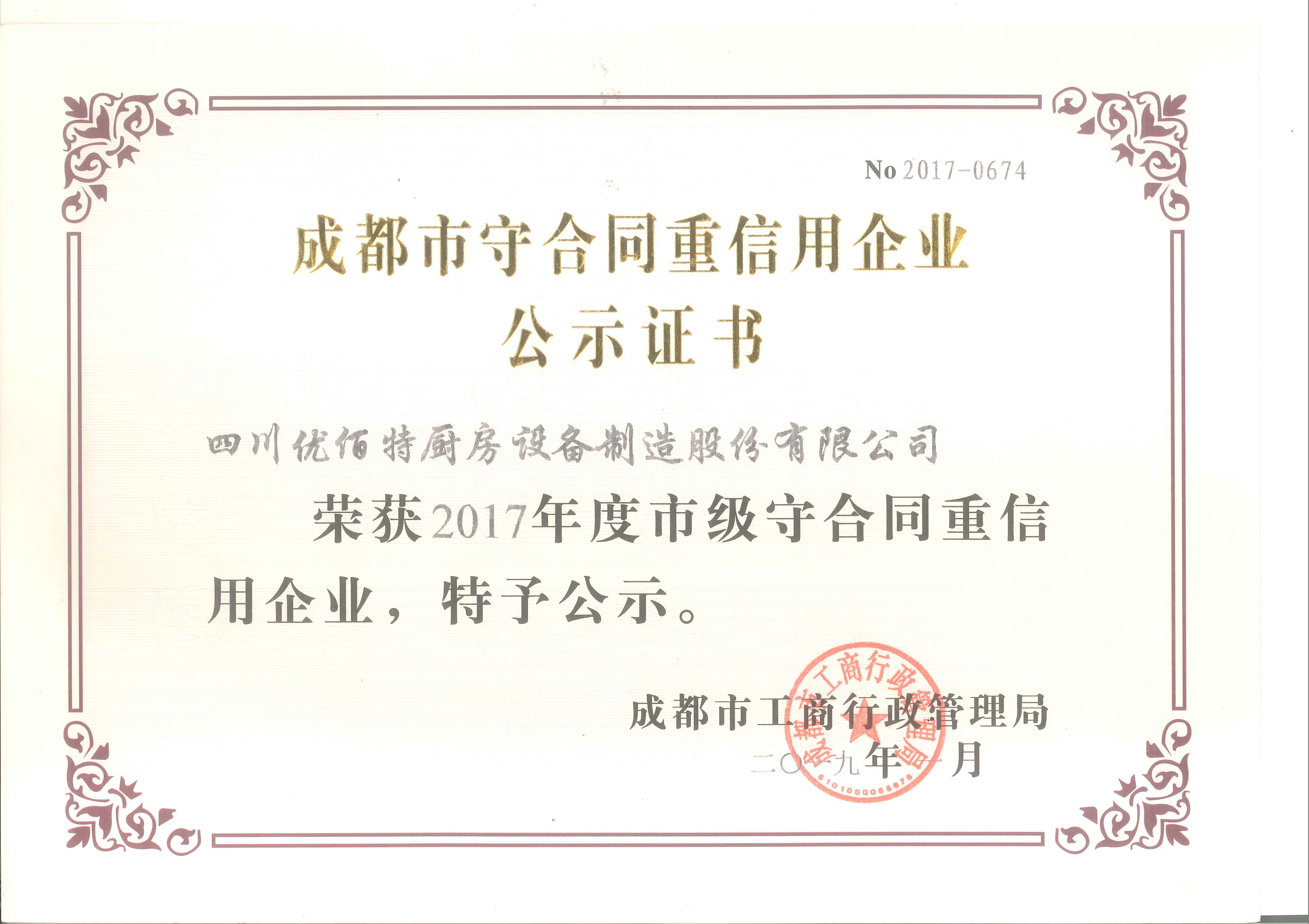 熱烈慶祝我公司榮獲2019年成都市守合同重信用榮譽(yù)證書。四川優(yōu)佰特廚房設(shè)備公司作為成都廚房設(shè)備行業(yè)的老牌生產(chǎn)機(jī)構(gòu),在其20多年的發(fā)展進(jìn)程中,一直在商用廚具領(lǐng)域深耕,認(rèn)真的做好每個(gè)產(chǎn)品的細(xì)節(jié),做好每個(gè)廚房工程項(xiàng)目.同時(shí),優(yōu)佰特在與客戶的交易過程中,也一直遵守國家相關(guān)法律的規(guī)定和合同條款的規(guī)定,絕不違返合同要求和損害客戶利益。正是,我們在這么多年的生意中,嚴(yán)格要求自己,守合同和重信用,收獲了良好的社會(huì)口碑,也得到了社會(huì)的積極認(rèn)可,并被授予2019年成都市守合同重信用榮譽(yù)證書。