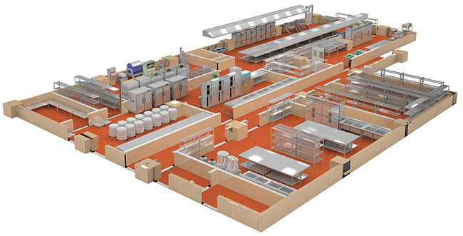 1、廚房的整個(gè)食品加工區(qū)域(洗消間、粗細(xì)加工間、烹調(diào)間等工作區(qū))結(jié)構(gòu)專業(yè)設(shè)計(jì)時(shí)考慮做降板300mm以上的處理。