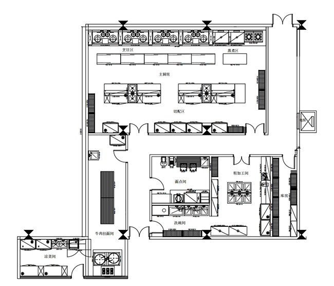 3.餐品經(jīng)營特點(diǎn)決定廚房面積,如面食快餐、火鍋、烤肉等特色食品經(jīng)營,都要根據(jù)自己的計(jì)劃,確定廚房的面積。