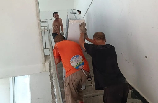 當(dāng)貨車到達(dá)工地后,無論現(xiàn)場的安裝條件怎樣的困難,也無論工地的溫度有多高,我們都會想盡辦法,把設(shè)備卸下來,然后再搬進(jìn)廚房工地。當(dāng)你在空調(diào)室抱怨空調(diào)不制冷時,在工地現(xiàn)場的師傅們可是在滾燙的天氣下大汗淋漓的搬運(yùn)和安裝設(shè)備,衣服褲子全都濕透了。